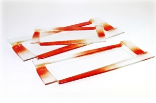 Nabízím nové designové servírovací tác. Rozměr tácu je 40 x 17cm. Červené zdobení. Možné vybrat i jinou barevnou variantu zdobení nebo větší a menší velikost. Vše na krasnesklo.cz. Zcela nové, nikdy nepoužívané. Uvedená cena je za 1ks. V případě zájmu volejte na uvedené telefonní číslo.