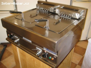 GASTRO PROFI fritéza MODULAR 65/71 FRE s vypouštěním Nerez. Hloubka 65 cm. Šířka 70 cm. Výška zadního panelu 38 cm. Příkon 15 kW. Připojení na 380 (400) V. Dvě samostatné fritézy každá s vlastním termostatickým ovládáním a vlastním kohoutem k vypouštění oleje. Každá fritéza má tři 4-závitové spirály. Jedinný problém je, že v levé fritéze fungují jen dvě spirály, třetí spirála nehřeje, jinak vše ostatní je funkční. Možno dovézt nebo zaslat.