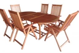Celý set nábytku na zahradu s označením Burgis. Celá sada nábytku je z tvrdého exotického dřeva eukalyptus. Set obsahuje 6 žídlí s područkami, které jsou polohovatelné. Stůl je oválný, rozložitelný. Vše nové, nepoužité. V nabídce na zahradnidrevenynabytek.cz V případě zájmu o koupi nebo dalších dotazů mi prosím volejte na uvedené telefonní číslo.