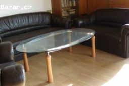 Prodám obývací pokoj a to konferenční stolek (cena cca 2000,- Kč) a koženou sedací soupravu, sestava 1+2+3 (cena cca 17000,- Kč).
