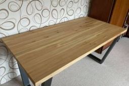 Deska - jilm Rozměr - 160x80x4 cm Povrch - tvrdý voskový olej a tvrdý voskový lak remmers Podnož - jekl 80x40 mm, práškový lak odstín antracit