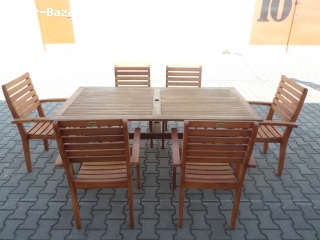 Prodám úplně novou a ještě nerozbalenou sestavu zahradního nábytku QUEEN SET. Luxusní zahradní stolová sestava obsahuje 6 křesel a stůl z exoticky velice trvanlivého a tvrdého dřeva Akácie. Rozměry stolu 180x90x72 cm. Rozměry křesla 61x74x106.