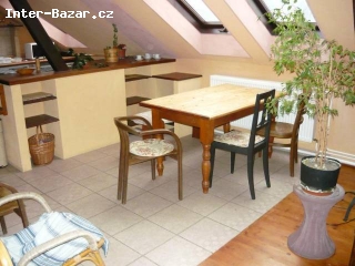 Podkrovní mezonetový byt, OV, klidná lokalita, s výhledem na celé pohoří Beskyd, 5.p./5.p., cihla, vnitřní příčky - Ytong, kolaudace r. 2000, užitná plocha: 100m2 (chodba;sociál.zařízení; kuchyň+jídelní kout+obývací pokoj; velký pokoj; malý pokoj), 20m2 (snížené podkroví - relaxační zóna+ložnice), 20m2 úložný prostor - snížené podkroví; interiér: strukturované omítky, přiznané dřevěné krovy (protipožární nátěr), možnost vybudování krbu; vytápění: vlastní plynový kotel - ohřev vody, vytápění celého bytu; okna: dřevěná - zn.Fakro - nově osazená, zn.Kubeso - původní, vnější clony proti průniku tepla; podlahy: dřevěná, laminátová, dlažba; kuchyň: zděný korpus, pracovní plocha - keramika, vestavěná el.trouba s plynovým sporákem, místo pro zabudování myčky, pračky; sociální zařízení: koupelna s rohovou vanou-samostatně, WC - samostatně; TV, i-net; sušárna, místnost na odkládání kol a kočárků - společné prostory domu; možnost sportovního vyžití: tenisové kurty, městská sportovní hala, squashová hala, bazén, fitcentrum, dostupnost: Horečky - přírodní zóna, v bezprostřední blízkosti (turistické trasy, cyklotrasy) centrum: 15min. chůze, autobusové nádraží, nedaleko vlakové nádraží.