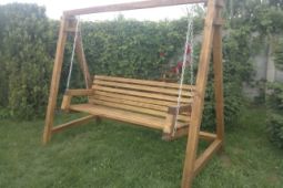 Prodej dřevěné houpačky o délce 237cm , šířce 124cm a o výšce 200cm. Sedák houpačky je dlouhý 180cm, široký 44cm a opěradlo je 49cm. Tato houpačka je za 4500Kč.