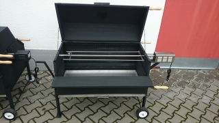 Prodávám nový gril na sele s elektromotorem. Hmotnost grilu 75kg a je velice stabilní. Gril má kolečka a můžete ho bez problémů přemístit. Česká výroba. Pohon 220V. Gril má topeniště vzadu s šuplíkem na popel, kvalitní motor pro váhu až 100 kg, součástí je nerez jehla a vana, na které je možno při grilování připravit zeleninu. V nabídce na zahradnidrevenynabytek. V případě zájmu o koupi nebo dalších dotazů mi prosím volejte na uvedené telefonní číslo.