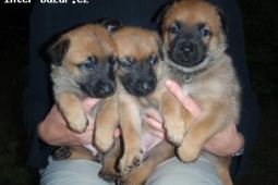 Prodám štěňata Belgického ovčáka Malinois s PP, po pracovně vedených rodičích. Oba rodiče mají vrcholové zkoušky, povahový test 100 bodů. Výborní aportéři a tvrdí obranáři. Otec: Vasil Bono Campo, RTG 0/1, IPO1, IPO2, IPO3, účastník mnoha vrcholových soutěží MR a MRBO. Matka: Mischa KORZÁR, RTG 0/0, výborná 1 CAC, IPO1, IPO2, IPO3, ZVV1, ZVV2, ZVV3. Předpoklad výborných pracovních vlastností a chutí do práce. Štěňata (5 holek a 4 kluci) se narodila 21.4.2011, odběr kolem 11.6.2011.