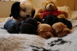 Anglický kokršpaněl-štěnátka zlatá a černá z vynik. spojení (dva vrhy). Rodiče milé přátelské povahy, vysoká výstavní ocenění, 100% zdrav.stav.Pečlivý rodinný odchov,21 let chovu,chovatelský servis plně zajištěn, kupní smlouva samozřejmostí.Tel:737 827 833, e-mail:nemec@razdva.cz