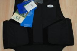 Bezpečnostní vesta USG Practico pro dospělé. Velikost XL. Rozměry: pas 106 - 116 cm, prsa 108-116 cm, od pasu do pasu přes rameno 104-112 cm. Odpovídá platné bezpečnostní normě EN 13158 a standardu BETA 3. Na přední straně se vesta zapíná na zip, na ramenou a bocích je suchý zip pro doupravení velikosti. Vnitřní materiál pěnová hmota. Barva černá. Včetně visačky, nová, nenošená. Po domluvě možno vyzkoušet v Tehově u Říčan.